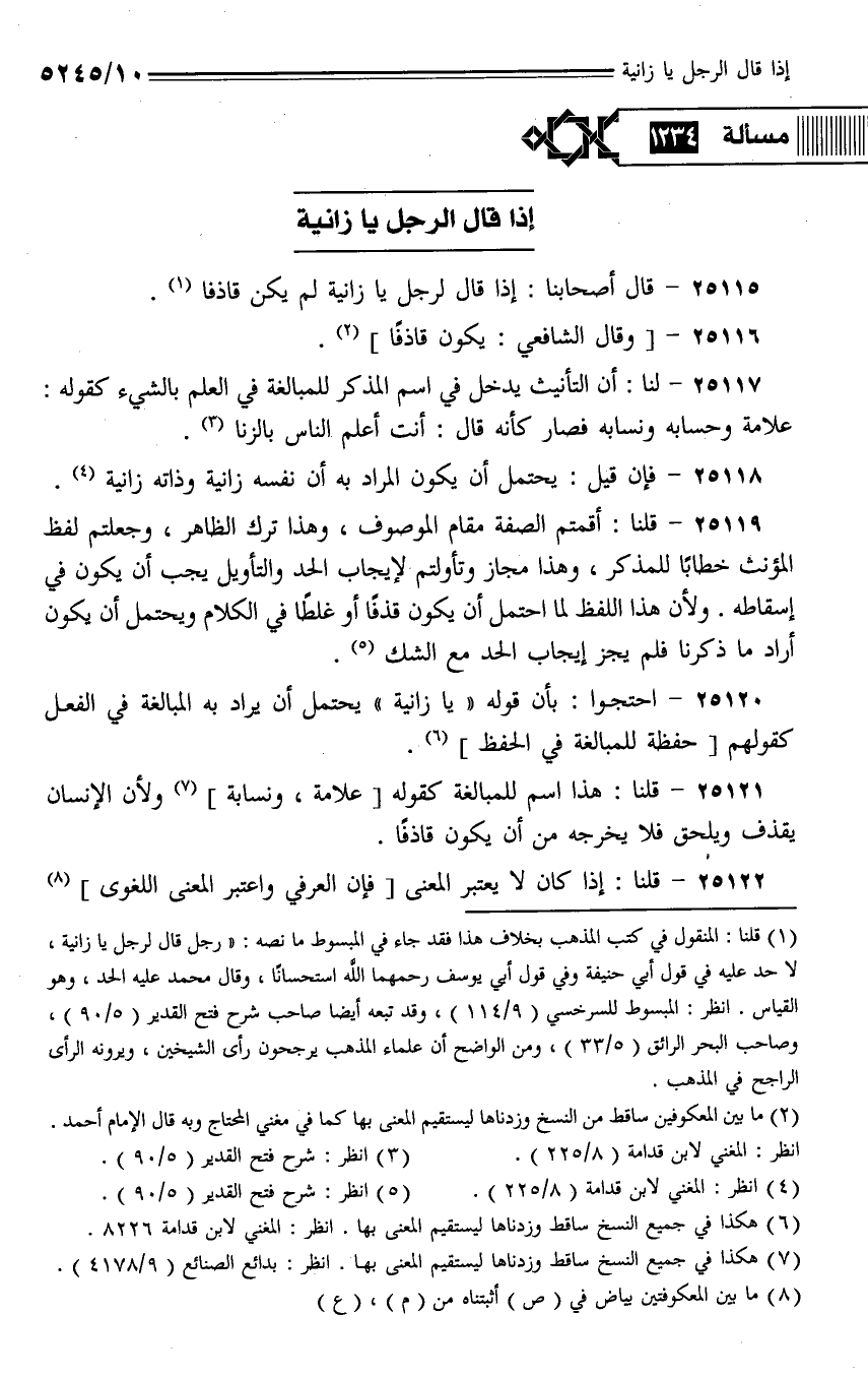 25121 - قلنا: هذا اسم للمبالغة كقوله [علامة، ونسابة] ولأن الإنسان يقذف ويلحق فلا يخرجه من أن يكون قاذفًا.