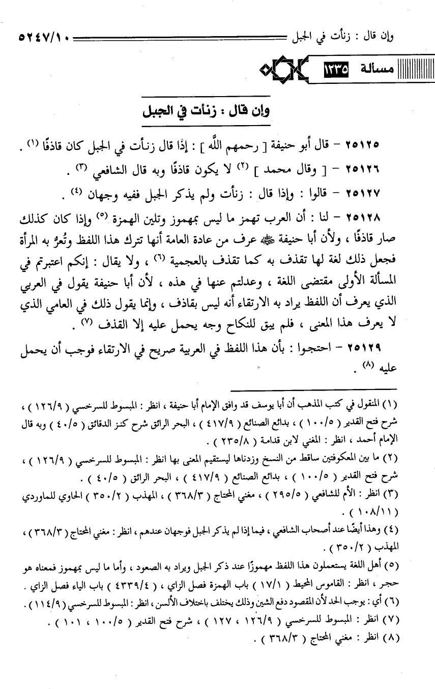 25125 - قال أبو حنيفة [رحمهم الله]: إذا قال زنأت في الجبل كان قاذفًا.