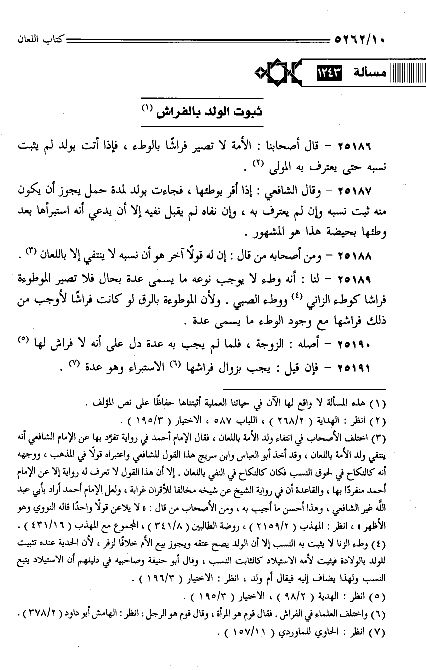 25189 - لنا: أنه وطء لا يوجب نوعه ما يسمى عدة بحال فلا تصير الموطوءة فراشًا كوطء الزاني ووطء الصبي. ولأن الموطوءة بالرق لو كانت فراشًا لأوجب من ذلك فراشها مع وجود الوطء ما يسمى عدة.