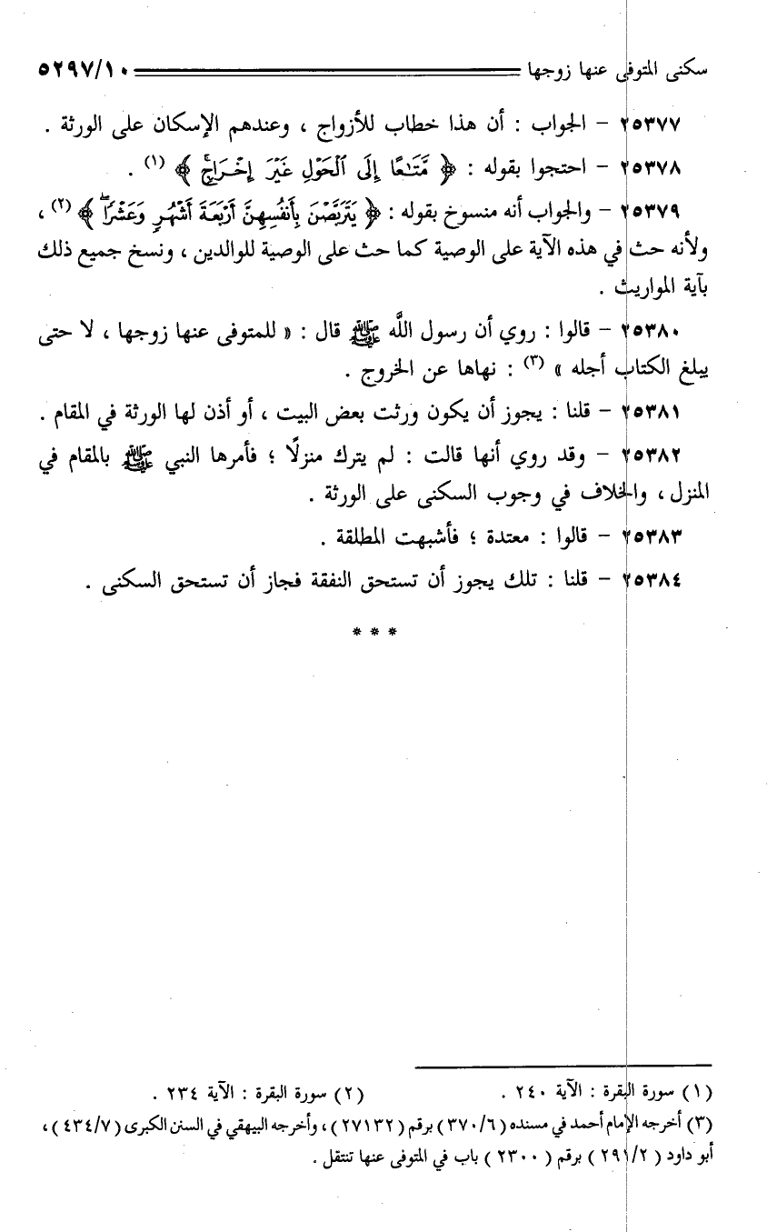 25379 - والجواب أنه منسوخ بقوله: (يتربصن بأنفسهن أربعة أشهر وعشرا)، ولأنه حث في هذه الآية على الوصية كما حث على الوصية للوالدين، ونسخ جميع ذلك بآية المواريث.