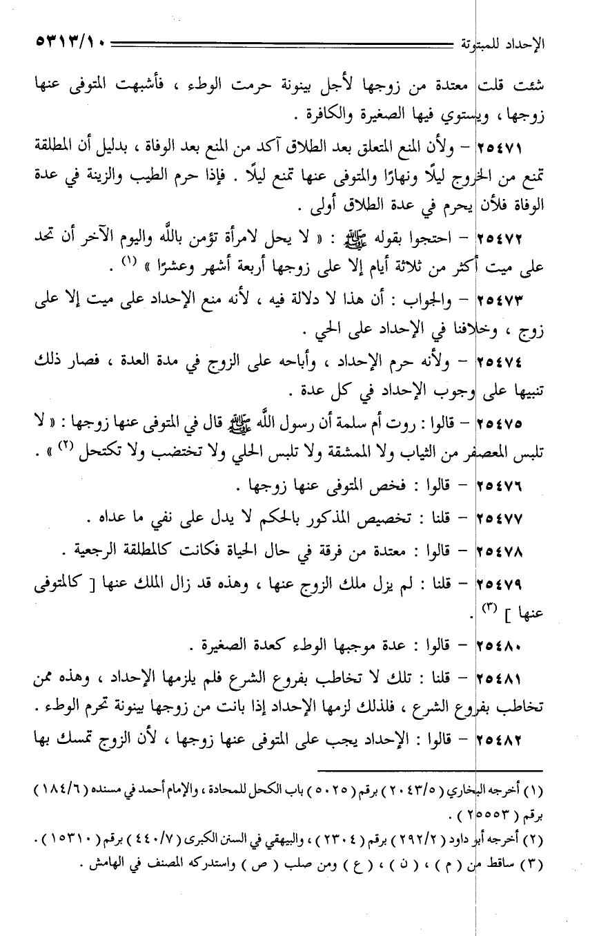 25482 - قالوا: الإحداد يجب على المتوفى عنها زوجها، لأن الزوج تمسك بها