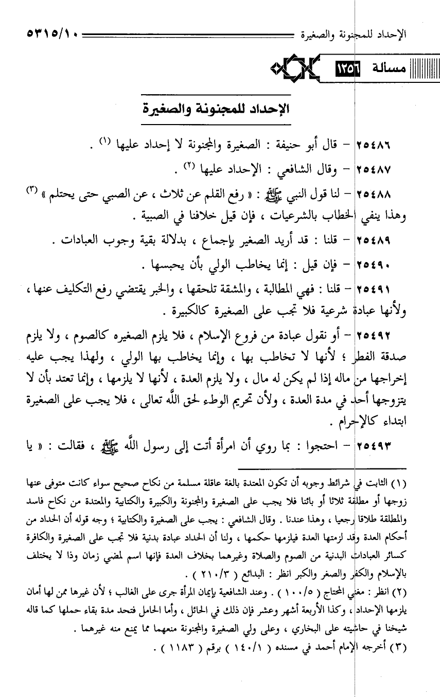 25486 - قال أبو حنيفة: الصغيرة والمجنونة لا إحداد عليها.
