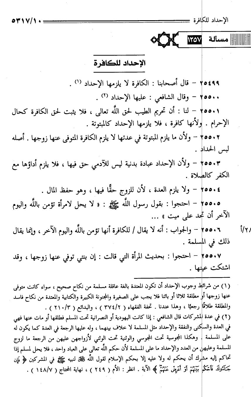 25499 - قال أصحابنا: الكافرة لا يلزمها الإحداد.