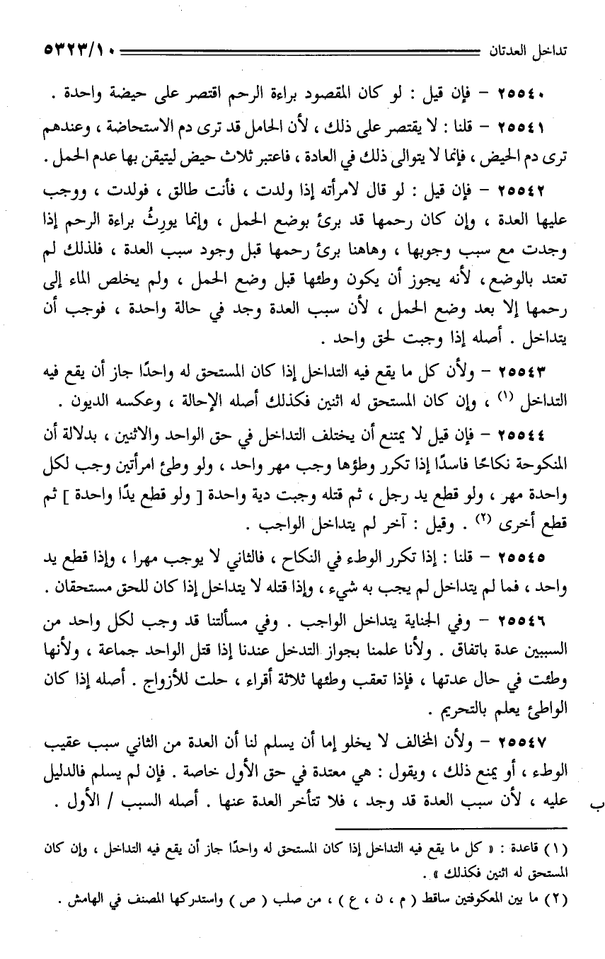 25544 - فإن قيل لا يمتنع أن يختلف التداخل في حق الواحد والاثنين، بدلالة أن المنكوحة نكاحًا فاسدًا إذا تكرر وطؤها وجب مهر وحد، ولو وطئ امرأتين وجب لكل واحدة مهر، ولو قطع يد رجل، ثم قتله وجبت دية واحدة [ولو قطع يدًا واحدة] ثم قطع أخرى. وقيل: آخر لم يتداخل الواجب.