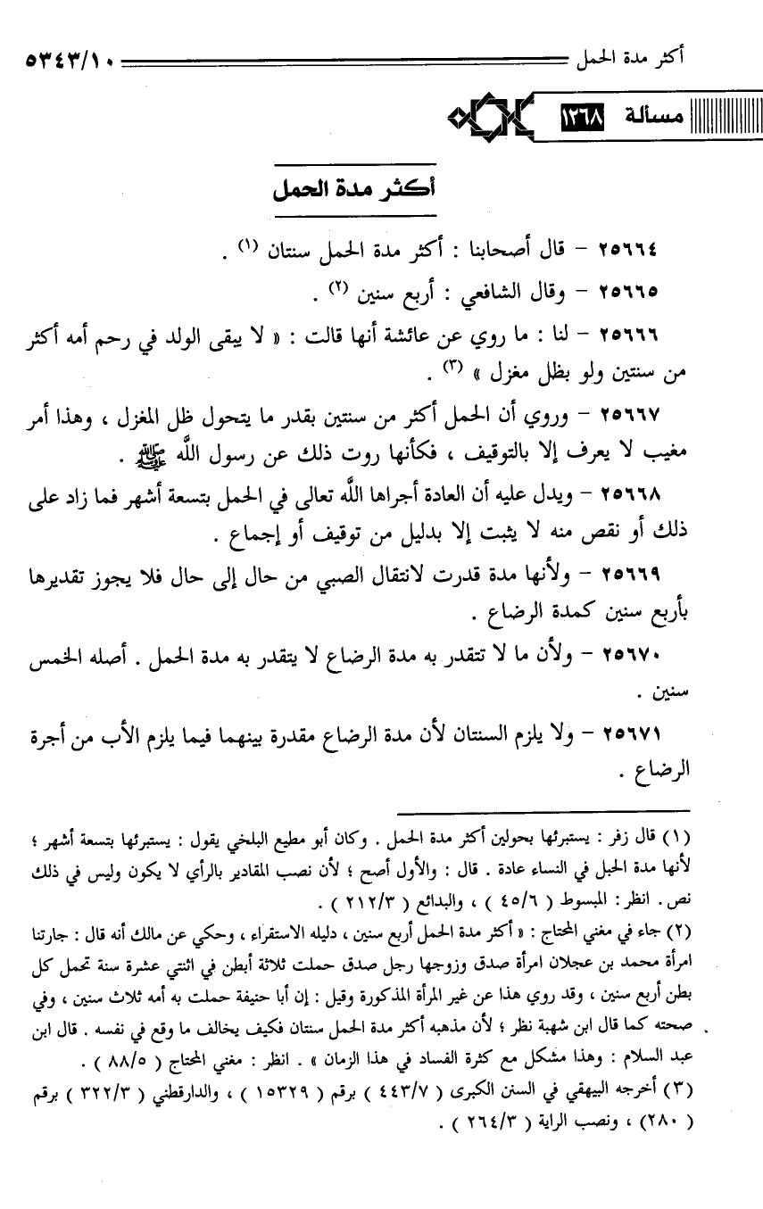 25664 - قال أصحابنا: أكثر مدة الحمل سنتان.