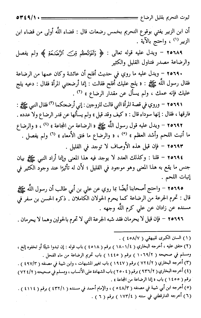 25695 - واحتج أصحابنا أيضًا بما روي عن علي بن أبي طالب أن رسول الله - صلى الله عليه وسلم - قال: تحرم الجرعة من الرضاعة كما يحرم الحولان الكاملان. ذكره الحسن بن سفر في مسنده عن زادان عن علي كرم الله وجهه.
