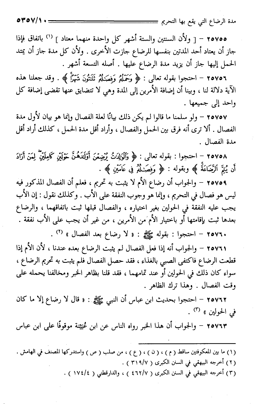 25758 - احتجوا: بقوله تعالى: (والولدت يرضعن أولدهن حولين كاملين لمن أراد أن يتم الرضاعة) وبقوله: (وفصله في عامين).
