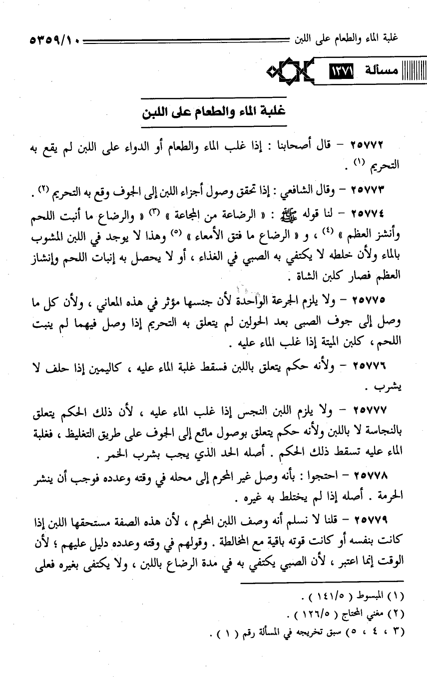 25777 - ولا يلزم اللبن النجس إذا غلب الماء عليه، لأن ذلك الحكم يتعلق بالنجاسة لا باللبن ولأنه حكم يتعلق بوصول مائع إلى الجوف على طريق التغليظ، فغلبة الماء عليه تسقط ذلك الحكم. أصله الحد الذي يجب بشرب الخمر.