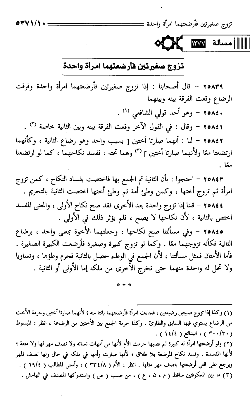 25839 - قال أصحابنا: إذا تزوج صغيرتين فأرضعتهما امرأة واحدة وفرقت الرضاع وقعت الفرقة بينه وبينهما.