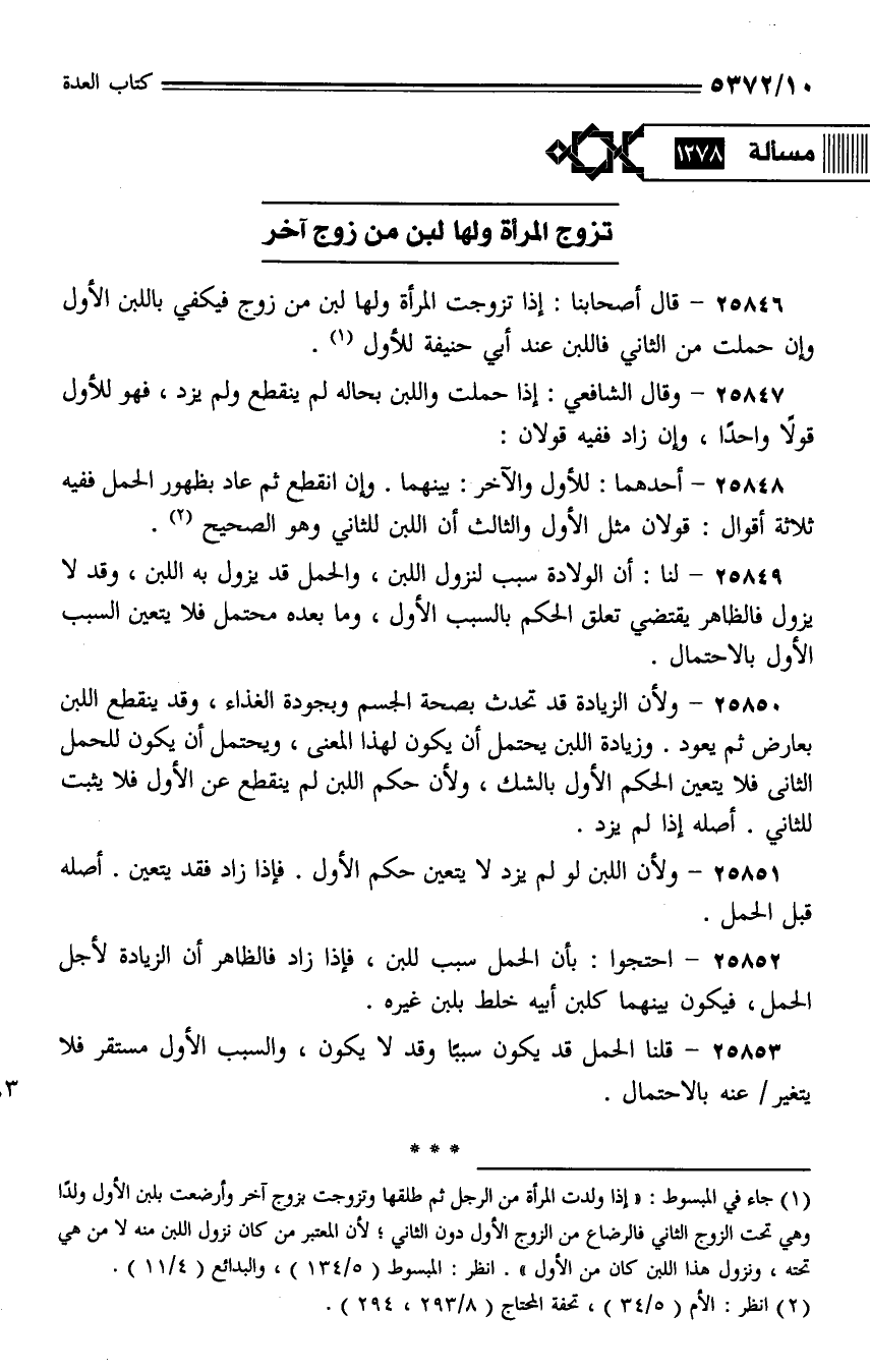 25846 - قال أصحابنا: إذا تزوجت المرأة ولها لبن من زوج فيكفي باللبن الأول وإن حملت من الثاني فاللبن عند أبي حنيفة للأول.