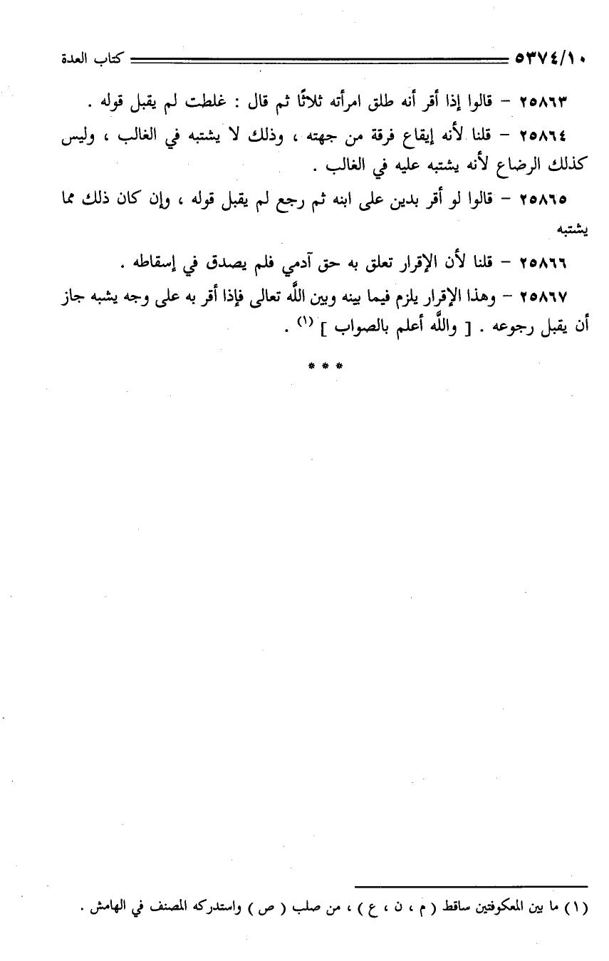 25863 - قالوا إذا أقر أنه طلق امرأته ثلاثًا ثم قال: غلطت لم يقبل قوله.