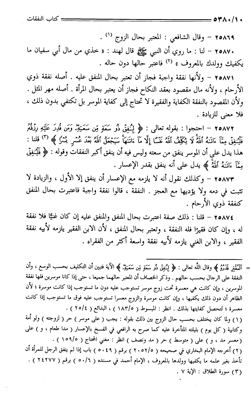 25870 - لنا: ما روي أن النبي - صلى الله عليه وسلم - قال لهند: (خذي من مال أبي سفيان ما يكفيك وولدك بالمعروف) فاعتبر حالها دون حاله.