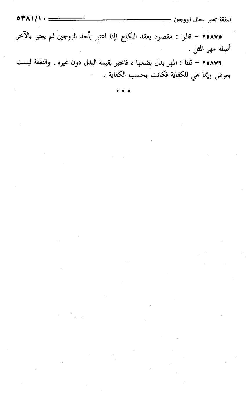 25876 - قلنا: المهر بدل بضعها، فاعتبر بقيمة البدل دون غيره. والنفقة ليست بعوض وإنماهي للكفاية فكانت بحسب الكفاية.