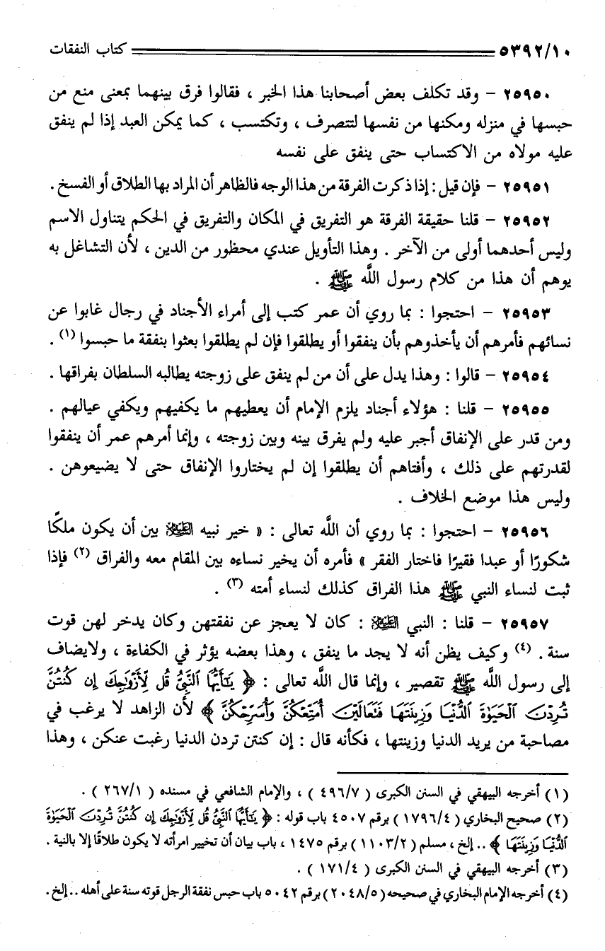 25950 - وقد تكلف بعض أصحابنا هذا الخبر، فقالوا فرق بينهما بمعنى منع من حبسها في منزله ومكنها من نفسها للتصرف، وتكتسب، كما يمكن العبد إذا لم ينفق عليه مولاه من الاكتساب حتى ينفق على نفسه