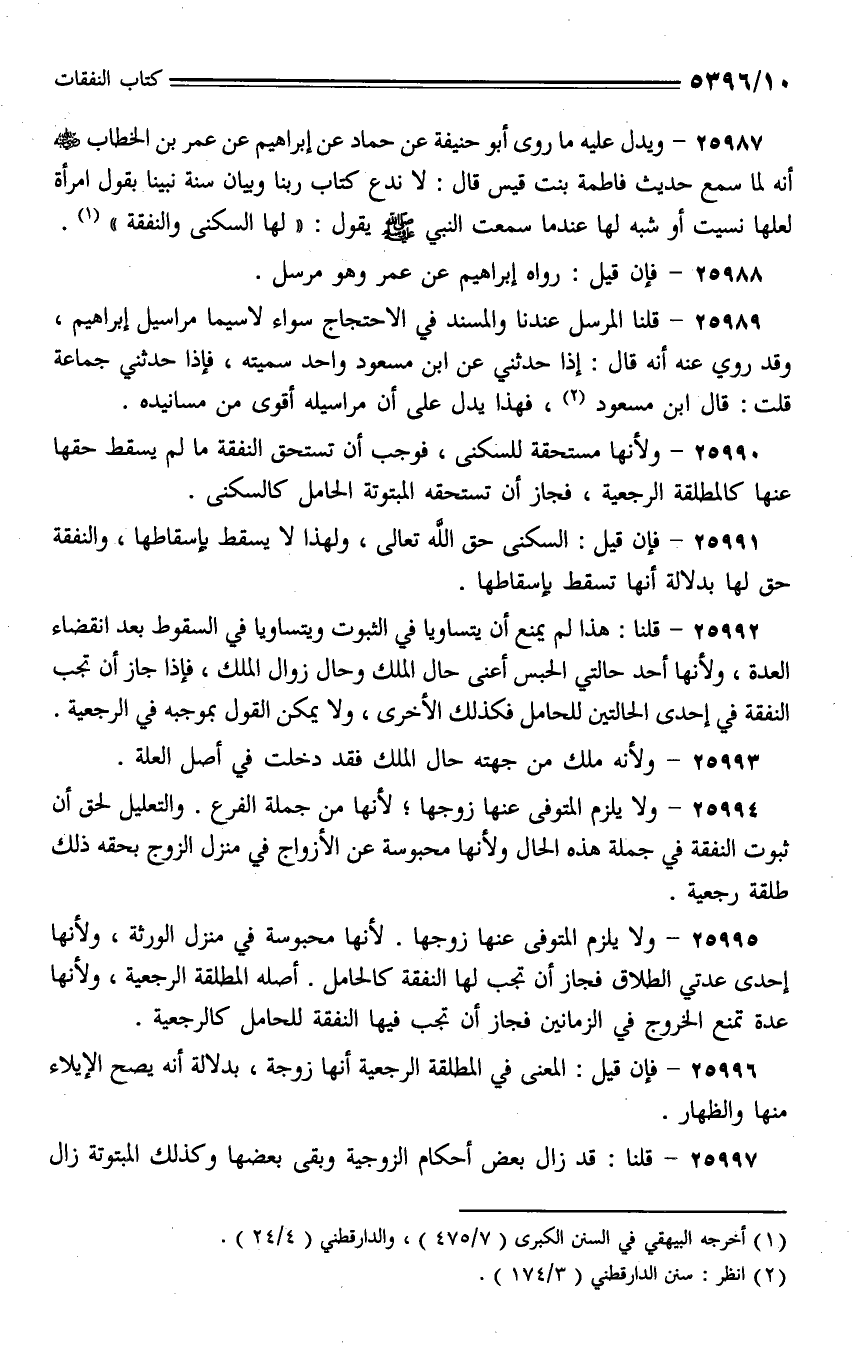 25992 - قلنا: هذا لم يمنع أن يتساويا في الثبوت ويتساويا في السقوط بعد انقضاء العدة، ولأنها احد حالتي الحبس أعني حال الملك وحال زوال الملك، فإذا جاز أن تجب النفقة في إحدى الحالتين للحامل فكذلك الأخرى، ولا يمكن القول بموجبه في الرجعية.