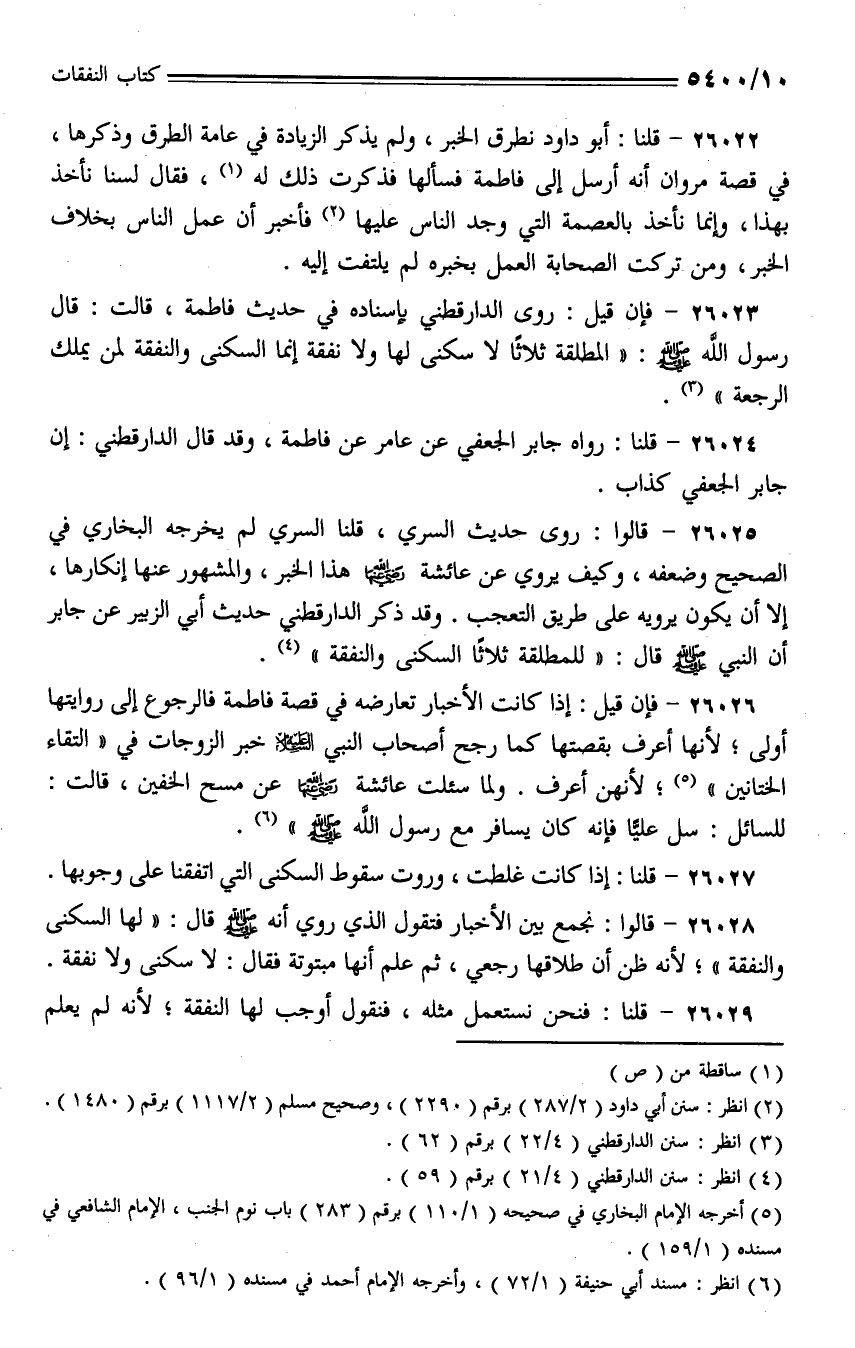 26022 - قلنا: أبو داود نطرق الخبر، ولم يذكر الزيادة في عامة الطرق وذكرها، في قصة مروان أنه أرسل إلى فاطمة فسألها فذكرت تلك له، فقال لسنا نأخذ بهذا، وإنما نأخذ بالعصمة التي وجد الناس عليها فأخبر أن عمل الناس بخلاف الخبر، ومن تركت الصحابة العمل بخبره لم يلتفت إليه.
