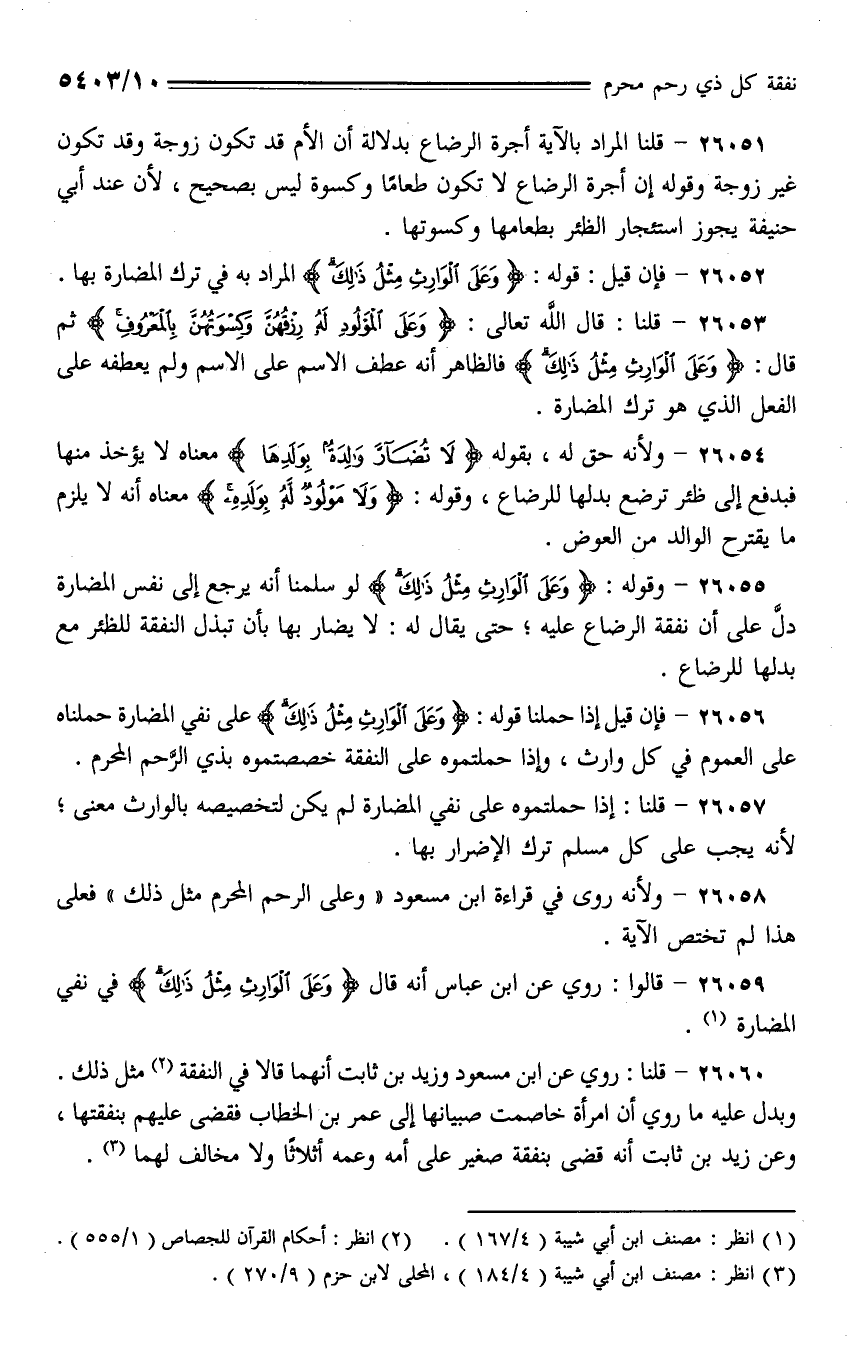 26059 - قالوا: روي عن ابن عباس أنه قال (وعلى الوارث مثل ذلك) في نفي المضارة.