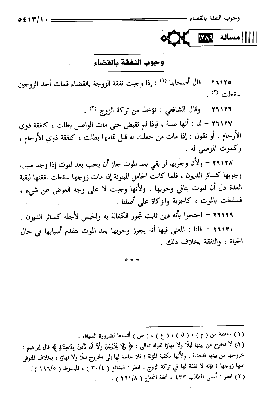 26128 - ولأن وجوبها لو بقي بعد الموت جاز أن يجب بعد الموت إذا وجد سبب وجوبها كسائر الديون، فلما كانت الحامل المبتوتة إذا ماتت زوجها سقطت نفقتها لبقية العدة دل أن الموت ينافي وجوبها. ولأنها وجبت لا على العوض عن شيء، فسقطت بالموت، كالجزية والزكاة على أصلنا.