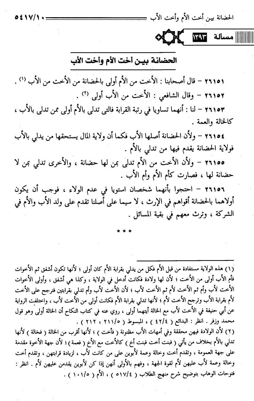26151 - قال أصحابنا: الأخت من الأم أولى بالحضانة من الأخت من الأب.