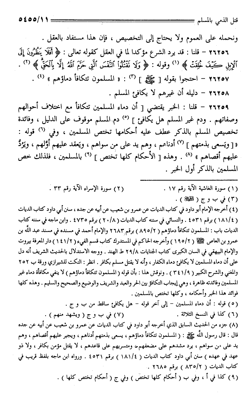 26258 - دليله أن غيرهم لا يكافئ المسلم.