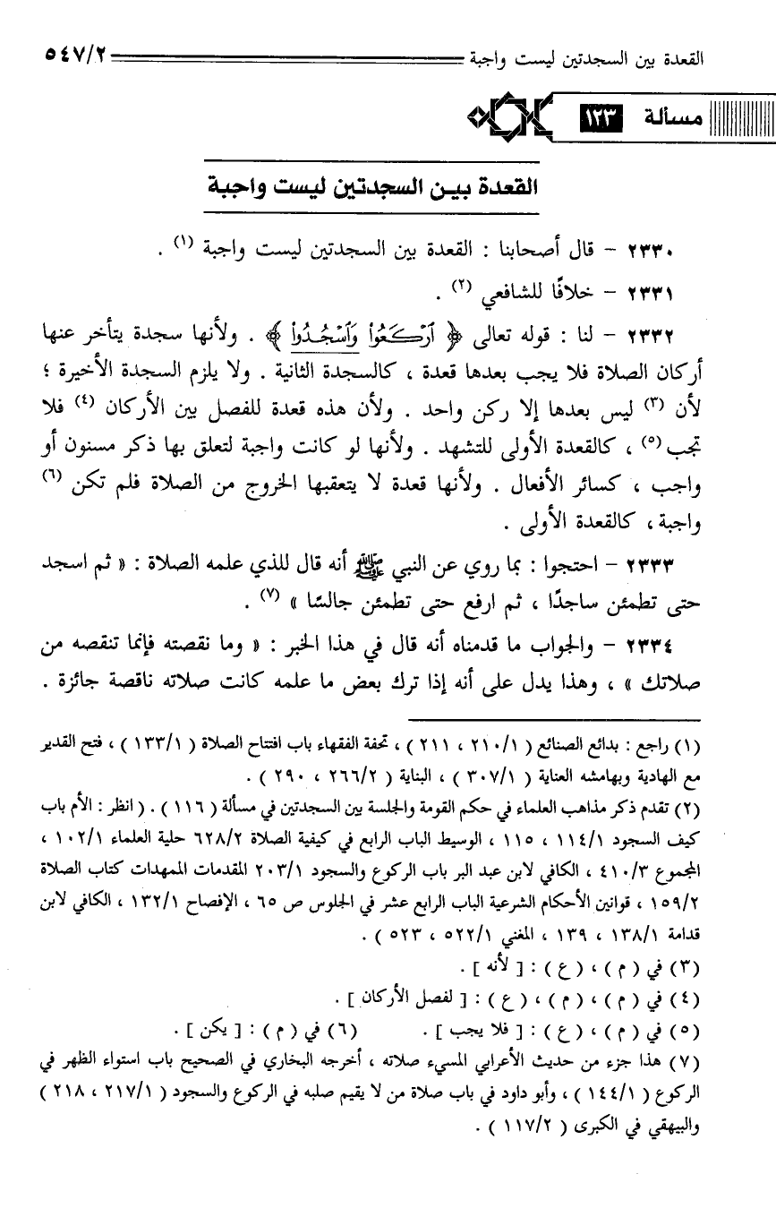 2330 - قال أصحابنا: القعدة بين السجدتين ليس واجبة.