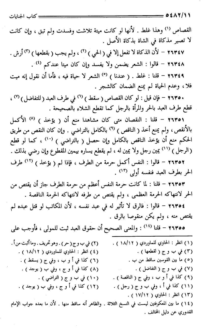 26354 - قالوا: فالرق لا تأثير له في عبد نفسه، لأن المكاتب لو قتل عبده لم يقتص منه، ولم يكن منقوصًا بالرق.