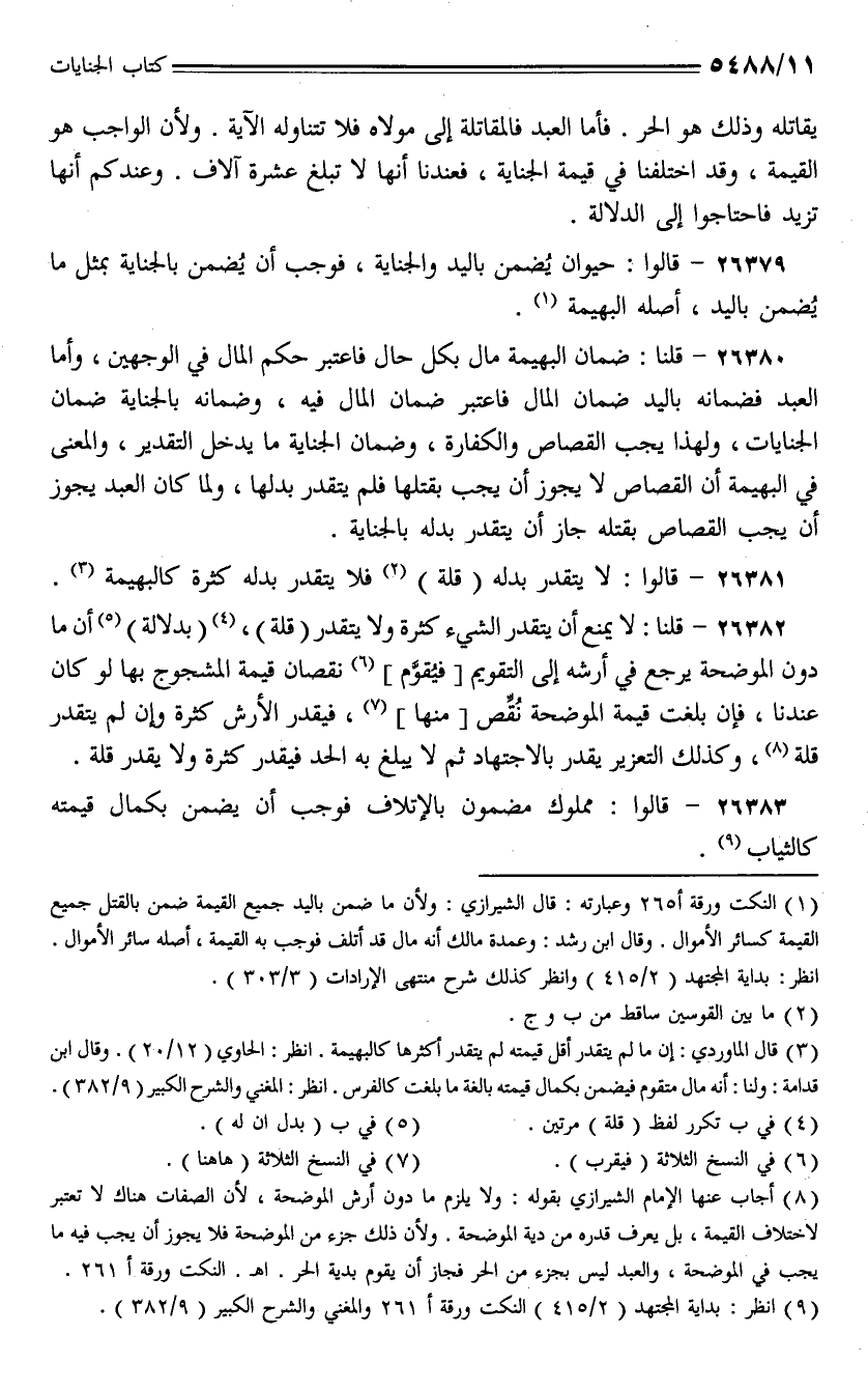 26381 - قالوا: لا يتقدر بدله (قلة) فلا يتقدر بدله كثرة كالبهيمة.
