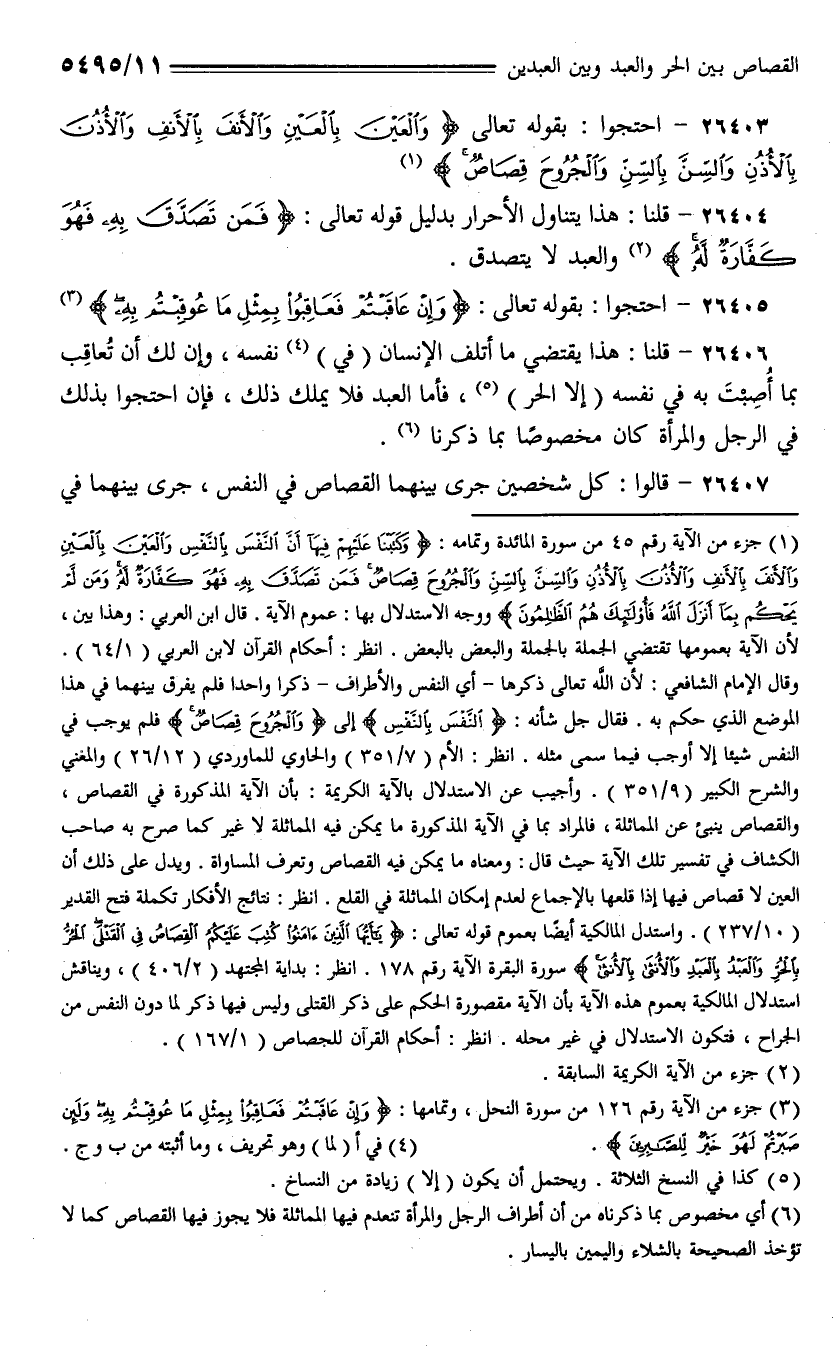 26407 - قالوا: كل شخصين جرى بينهما القصاص في النفس، جرى بينهما في