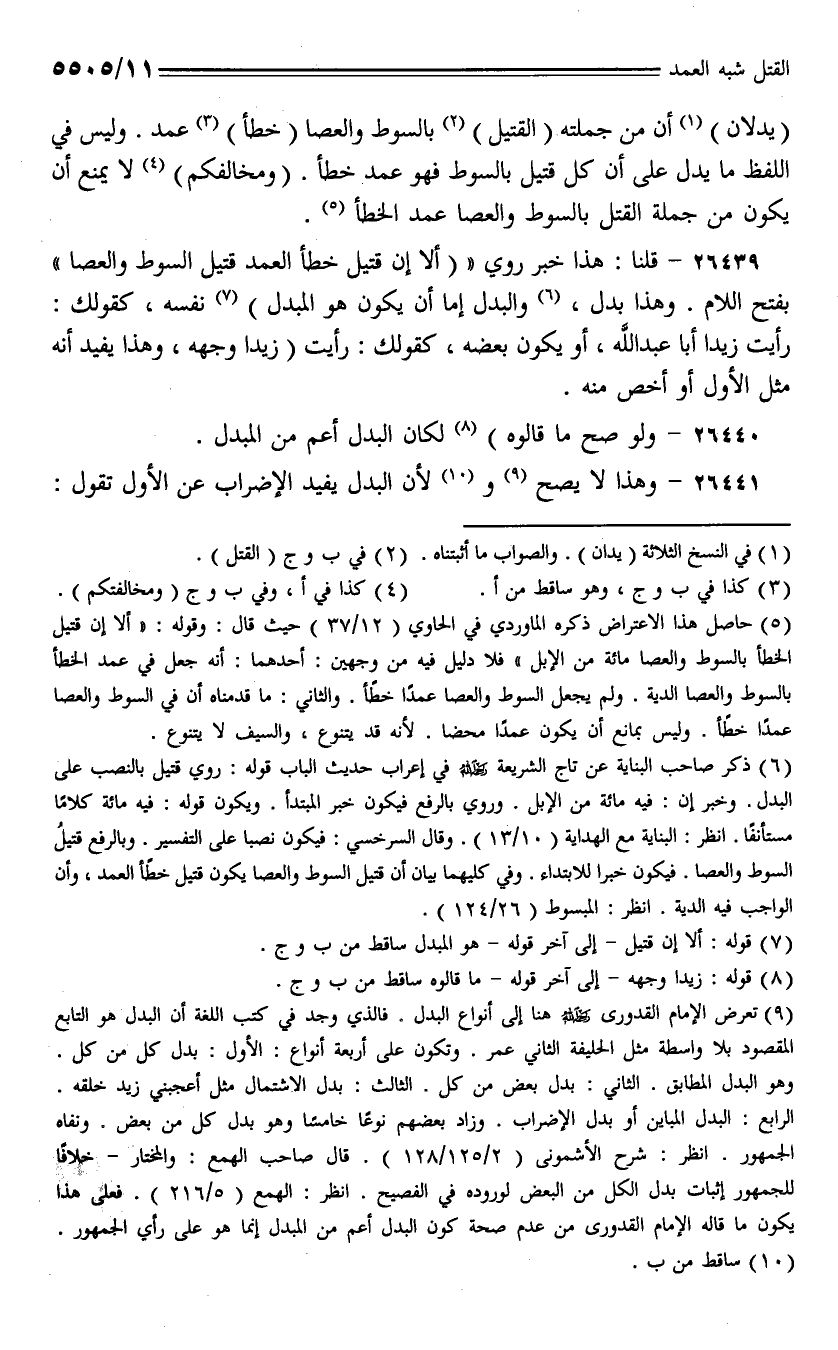 26439 - قلنا: هذا خبر روى (ألا إن قتيل خطأ العمد قتيل السوط والعصا بفتح اللام. وهذا بدل، والبدل إما أن يكون هو المبدل) نفسه، كقولك: رأيت زيداً أبا عبد الله، أو يكون بعضه، كقولك: رأيت (زيدًا وجهه، وهذا يفيد أنه مثل الأول أو أخص منه.