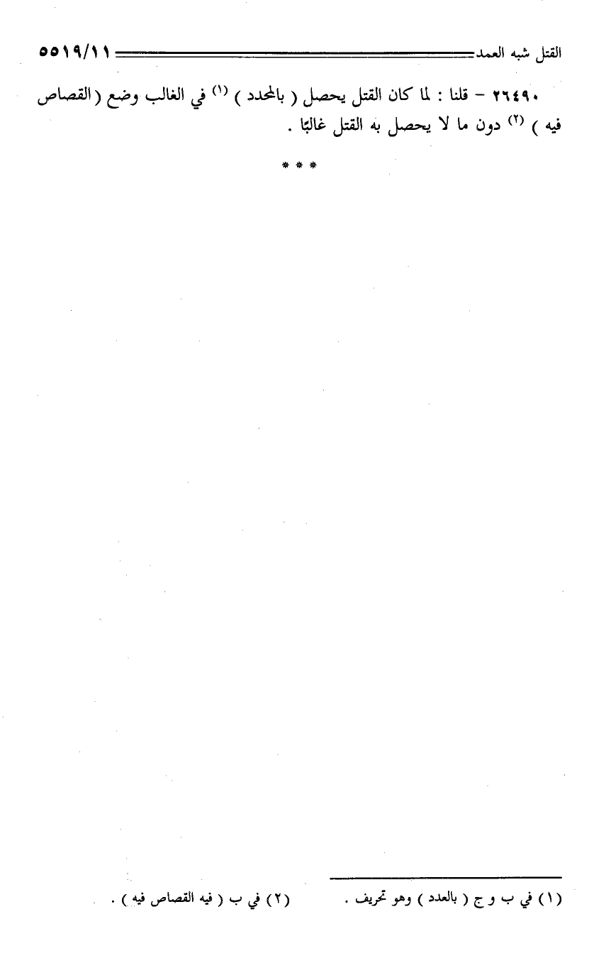 26490 - قلنا: لما كان القتل يحصل (بالمحدد) في الغالب وضع (القصاص فيه) دون ما لا يحصل به القتل غالبًا.