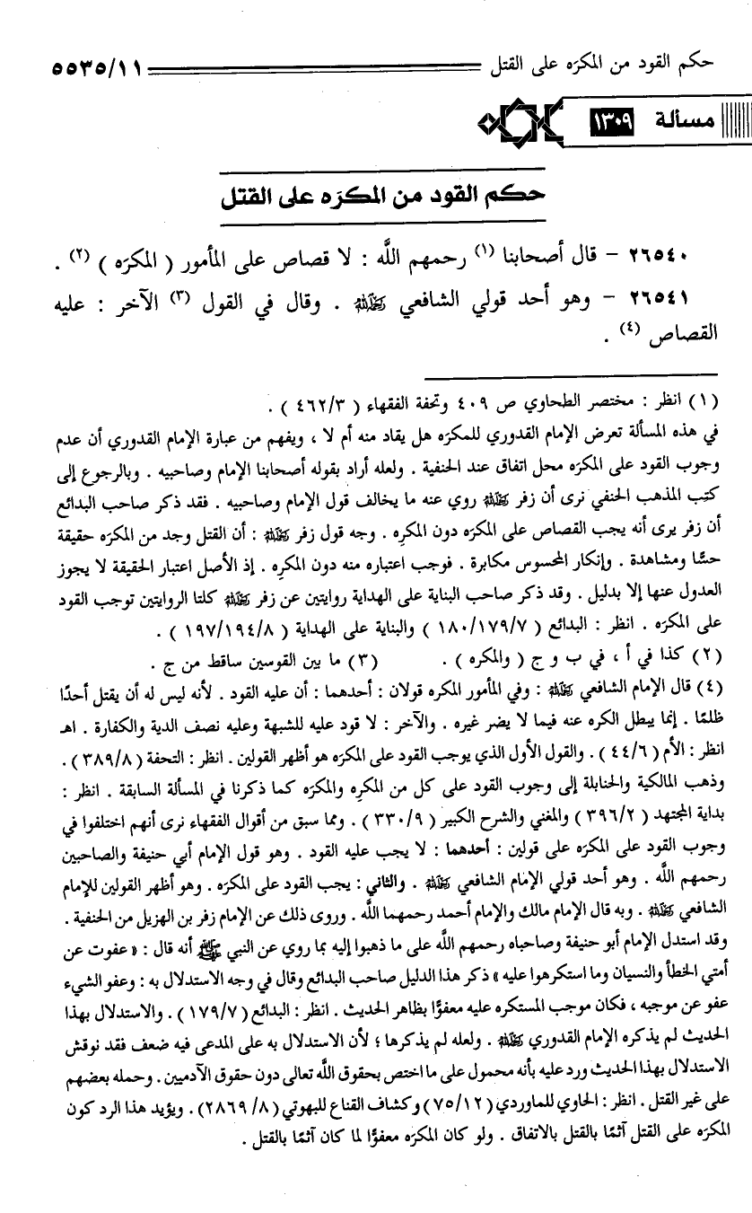 26540 - قال أصحابنا رحمهم الله: لا قصاص على المأمور (المكره).