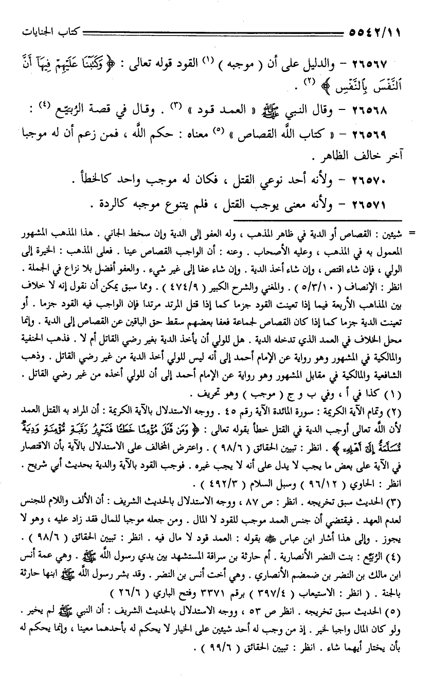 26567 - والدليل على أن (موجبه) القود قوله تعالى: {وكتبنا عليهم فيها أن النفس بالنفس}.