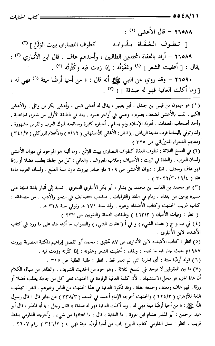 26590 - وقد روي عن النبي - صلى الله عليه وسلم - أنه قال: (من أحيا أرضا ميتة فهي له، [وما أكلت العافية فهو له صدقة])