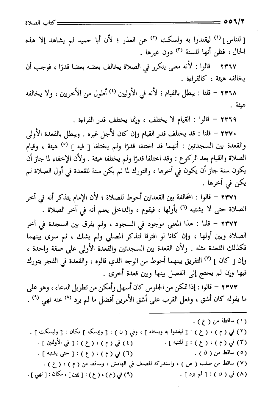 2368 - قلنا: يبطل بالقيام؛ لأنه في الأوليين أطول من الأخريين، ولا يخالفه خيئة.