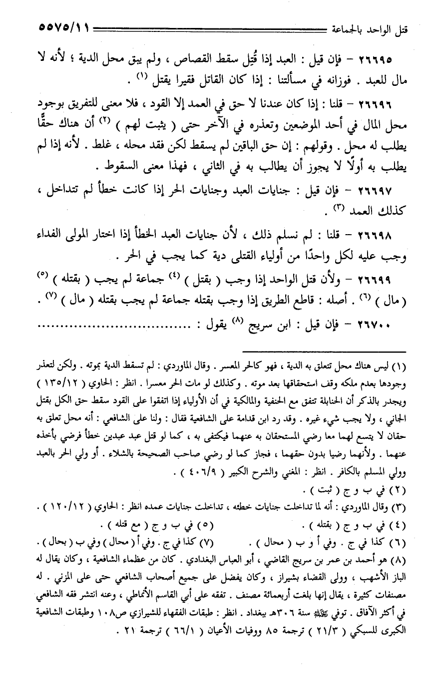 26699 - ولأن قتل الواحد إذا وجب (بقتل) جماعة لم يجب (بقتله) (مال). أصله: قاطع الطريق إذا وجب بقتله جماعة لم يجب بقتله (مال).