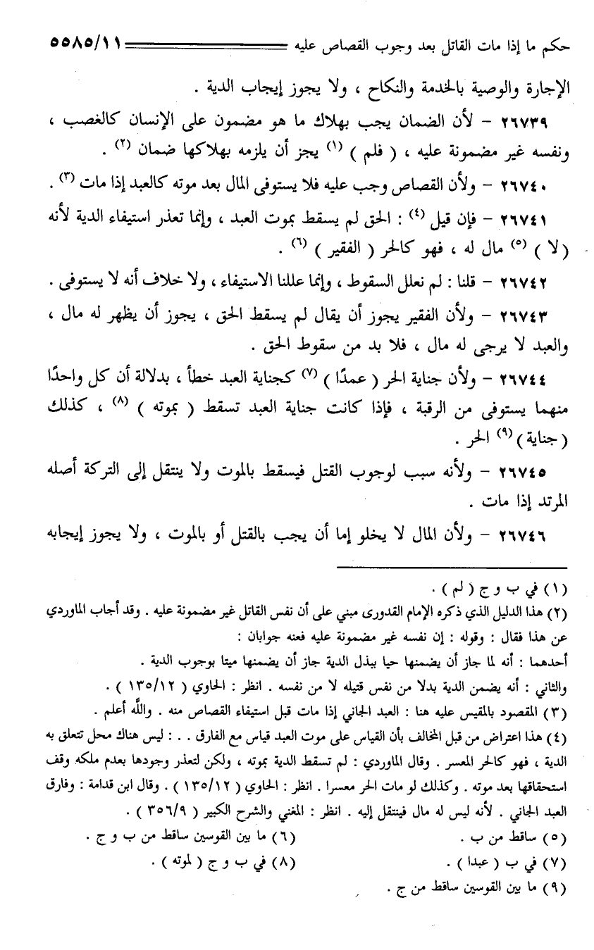 26744 - ولأن جناية الحر (عمدًا) كجناية العبد خطأ، بدلالة أن كل واحدًا منهما يستوفي من الرقبة، فإذا كانت جناية العبد تسقط (بموته)، كذلك (جناية) الحر.