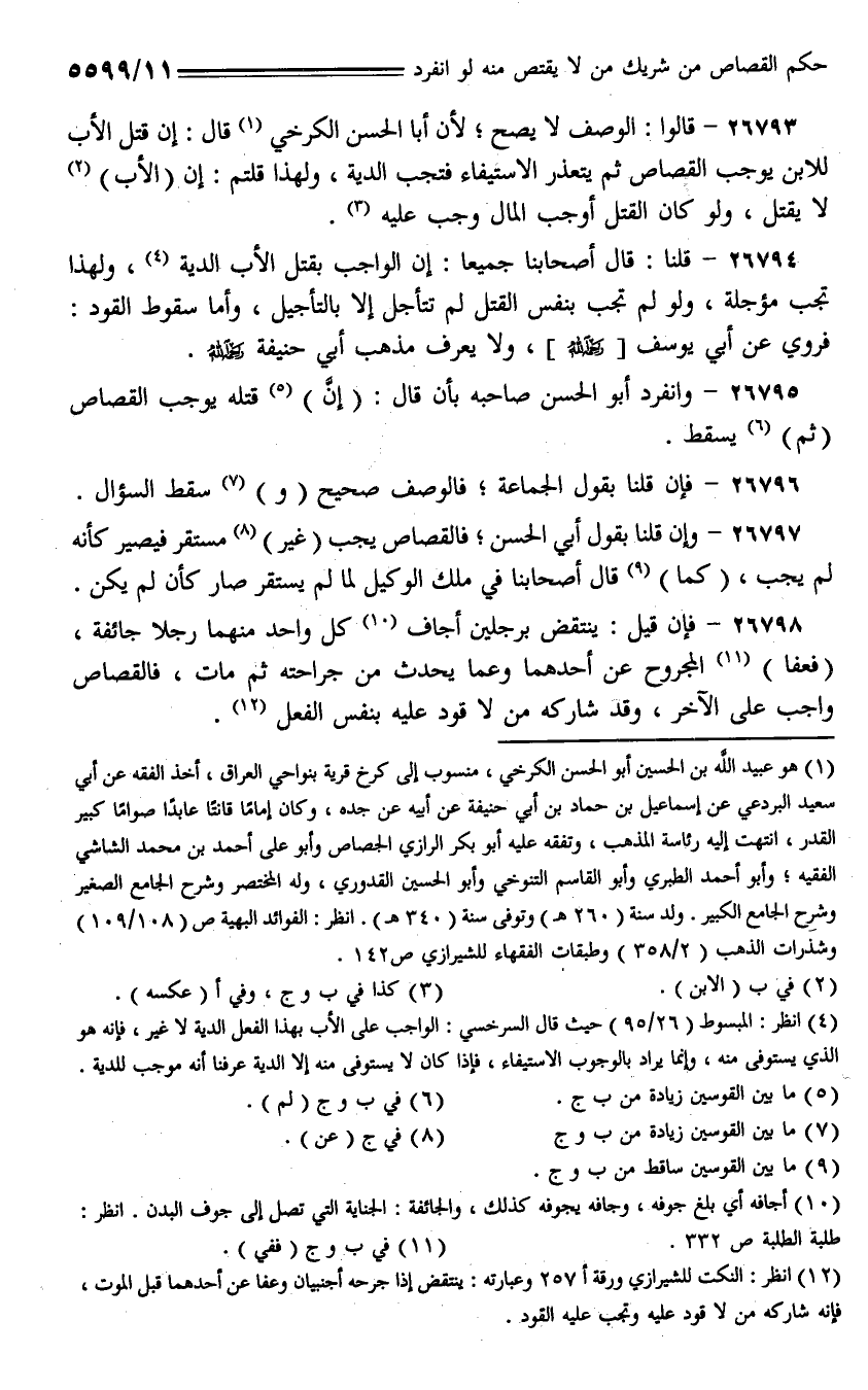 26795 - وانفرد أبو الحسن صاحبه بأن قال: (إن) قتله يوجب القصاص (ثم) يسقط.