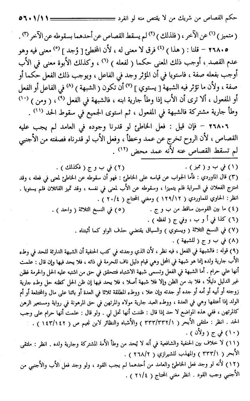 26805 - قلنا: (هذا) فرق لا معنى له، لأن المخطئ [وُجد] معنى فيه وهو عدم القصد، أوجب ذلك المعنى حكما (لفعله)، وكذلك الأبوة معنى في الأب أوجب بفعله صفة، فاستويا في أن المؤثر وجد في الفاعل، ويوجب ذلك الفعل حكما أو صفة، ولأن ما تؤثر فيه الشبهة [يستوي] أن تكون (الشبهة) في الفاعل أو الفعل أو المفعول، ألا ترى أن الأب إذا وطأ جارية ابنه، فالشبهة في الفعل، (ومن) وطأ جارية مشتركة فالشبهة في المفعول، ثم استوي الجميع في سقوط الحد.