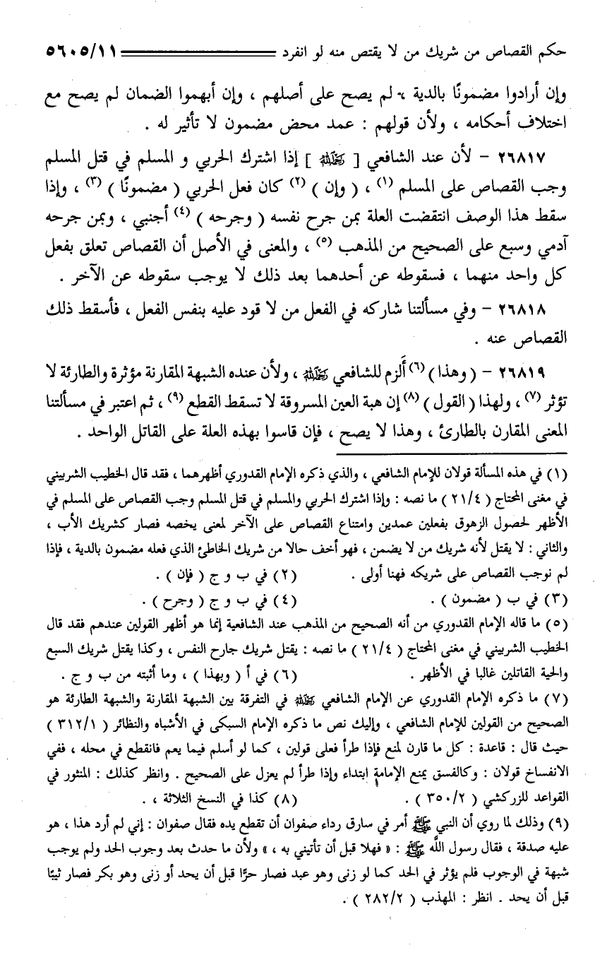 26818 - وفي مسألتنا شاركه في الفعل من لا قود عليه بنفس الفعل، فأسقط ذلك القصاص عنه.