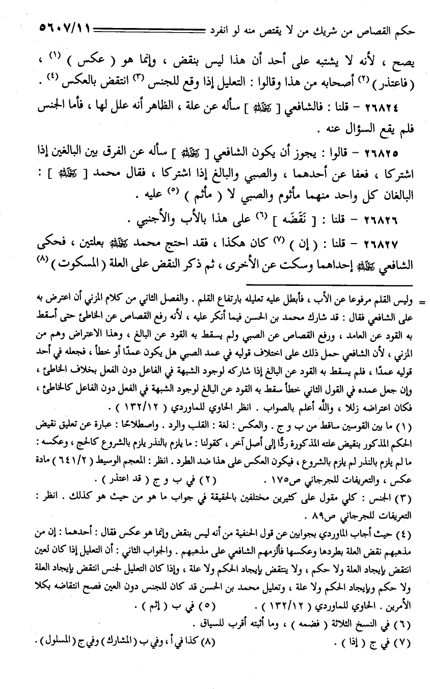 26825 - قالوا: يجوز أن يكون الشافعي [رحمه الله] سأله عن الفرق بين البالغين إذا اشتركا، فعفا عن أحدهما، والصبي والبالغ إذا اشتركا، فقال محمد [رحمه الله]: البالغان كل واحد منهما مأثوم والصبي لا (مأثم) عليه.