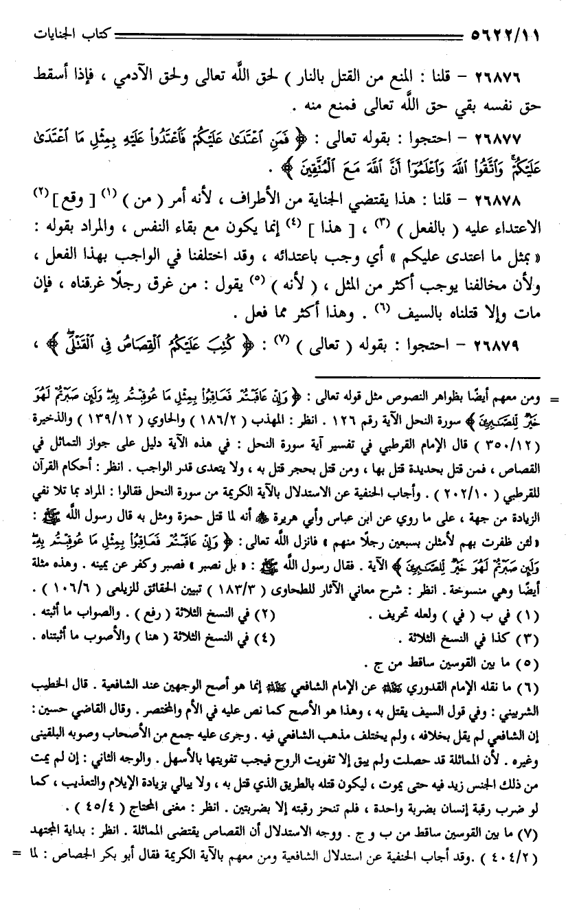 26877 - احتجوا: بقوله تعالى: {فمن اعتدى عليكم فاعتدوا عليه بمثل ما اعتدى عليكم واتقوا الله واعلموا أن الله مع المتقين}.