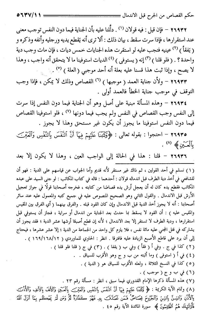 26935 - احتجوا: بقوله تعالى: {وكتبنا عليهم فيها أن النفس بالنفس والعين بالعين}.