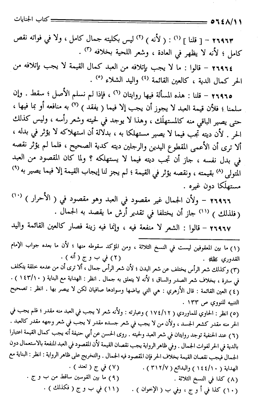 26963 - [قلنا]: (لأنه) ليس بكليته جمال كامل، ولا في فواته نقص كامل، لأنه لا يظهر في العادة، وشعر اللحية بخلافه.