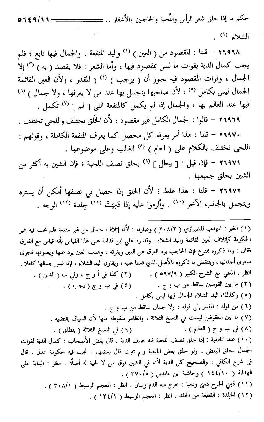 26970 - قلنا: هذا أمر يعرفه كل محصل كما يعرف المنفعة الكاملة، وقولهم: اللحى تختلف بالكلام على (العام) الغالب وعلى موضوعها.