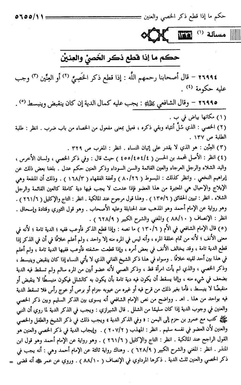 26994 - قال أصحابنا رحمهم الله: إذا قطع ذكر الخَصيِّ أو والعِنيِّن وجب عليه حكومة.