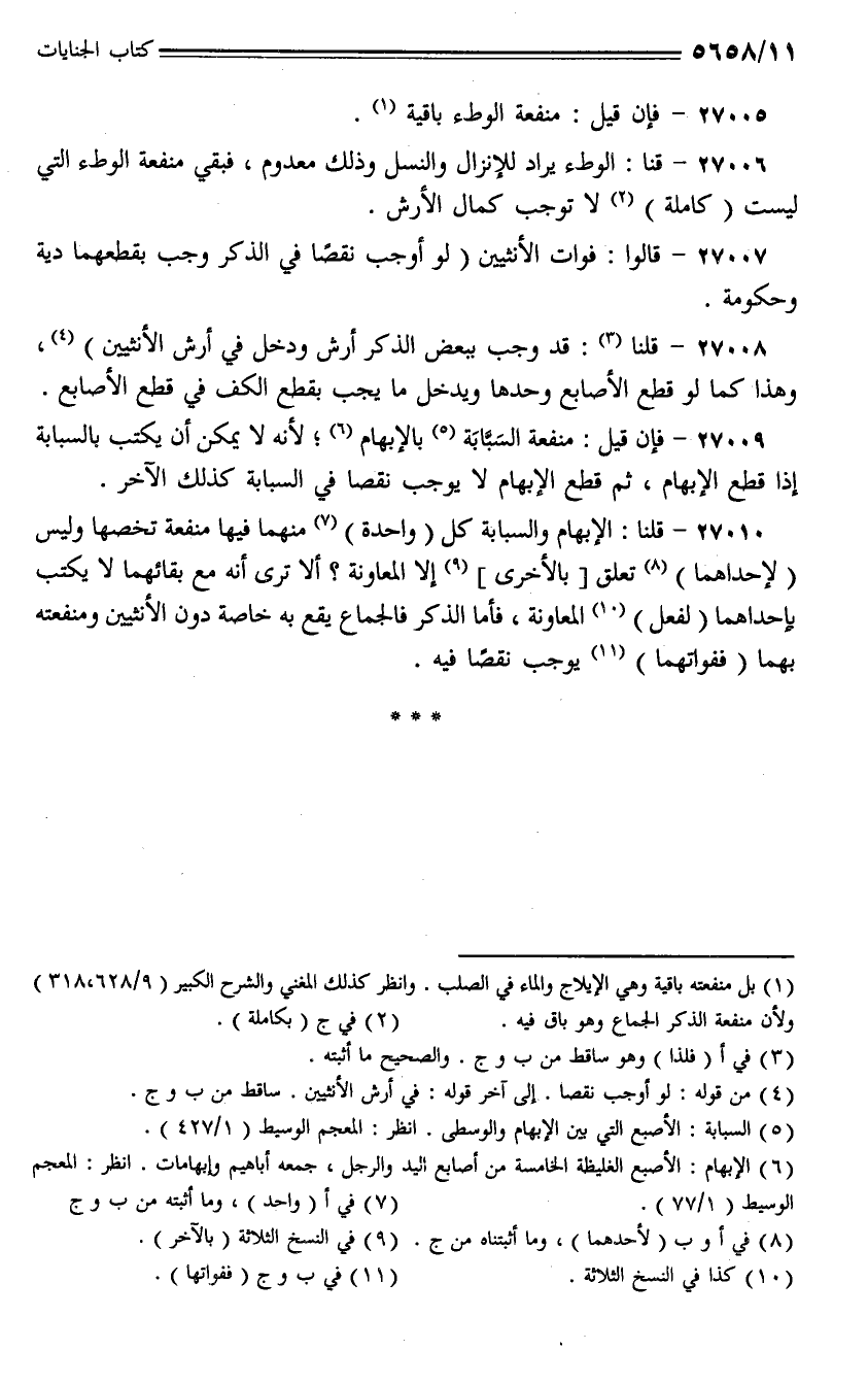 27008 - قلنا: قد وجب ببعض الذكر أرش ودخل في أرش الأنثيين)، وهذا كما لو قطع الأصابع وحدها ويدخل ما يجب بقطع الكف في قطع الأصابع.