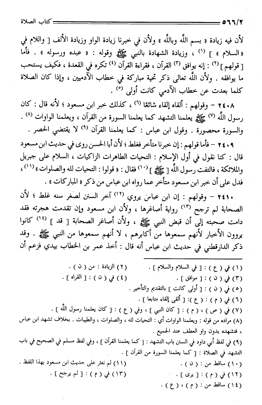 2408 - وقولهم: ألقاه إلقاء شائعا، كذلك خبر ابن مسعود؛ لأنه قال: كان رسول الله - صلى الله عليه وسلم - يعلمنا التشهد كما يعلمنا السورة من القرآن، ويعلمنا الواوات. والسورة محصورة. وقول ابن عباس: كما يعلمنا القرآن لا يقتضي الحصر.