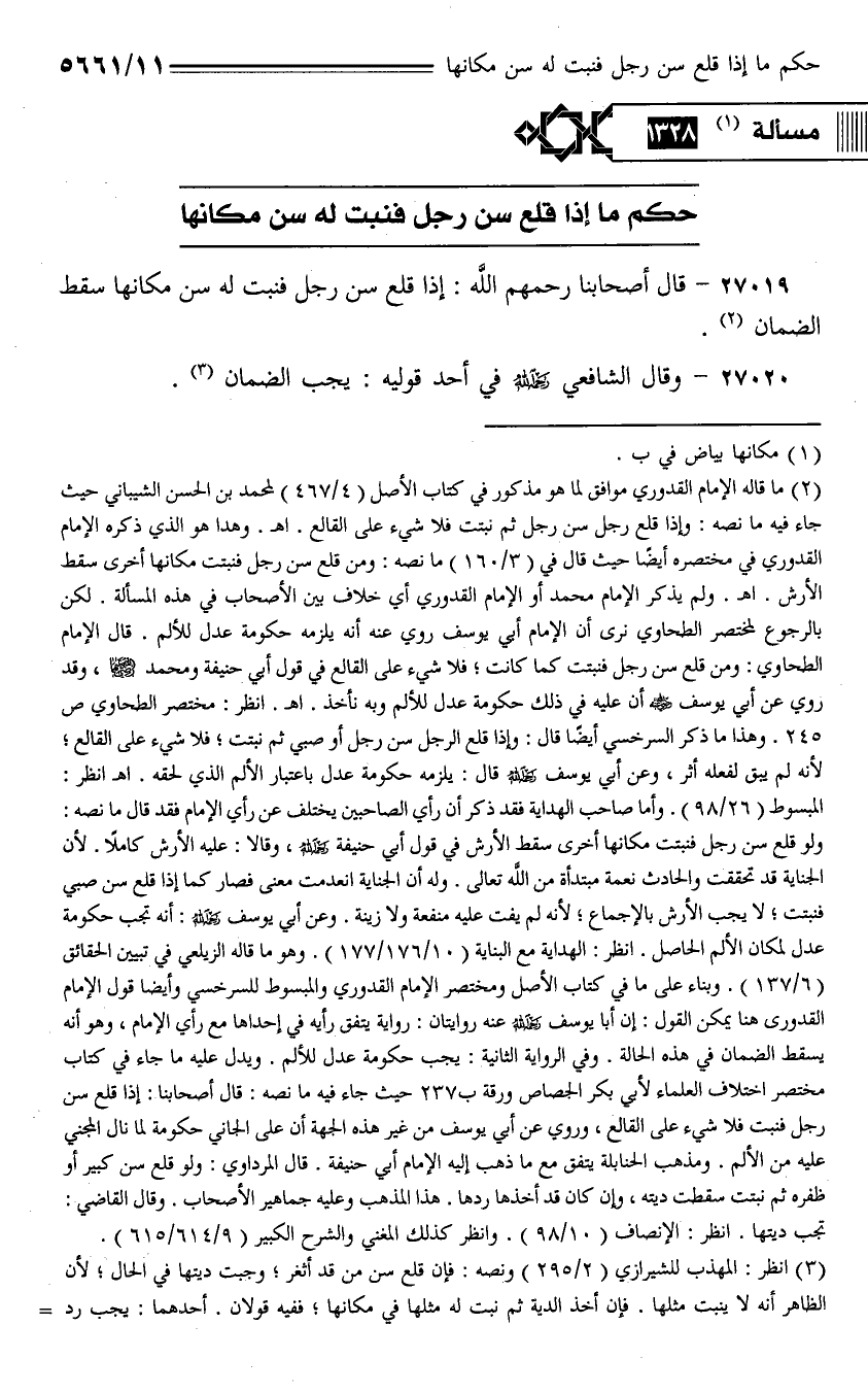 27019 - قال أصحابنا رحمهم الله: إذا قلع سن رجل فنبت له سن مكانها سقط الضمان.