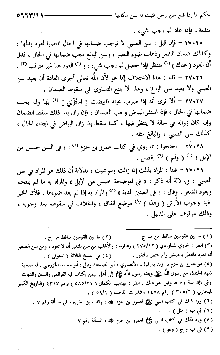 27028 - احتجوا: بما روي في كتاب عمرو بن حزم: (في السن خمس من الإبل) (ولم) يفصل.