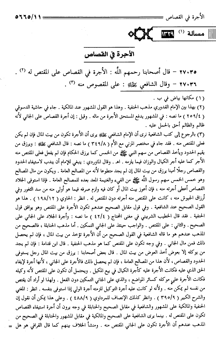 27035 - قال أصحابنا رحمهم الله: الأجرة في القصاص على المقتص له.